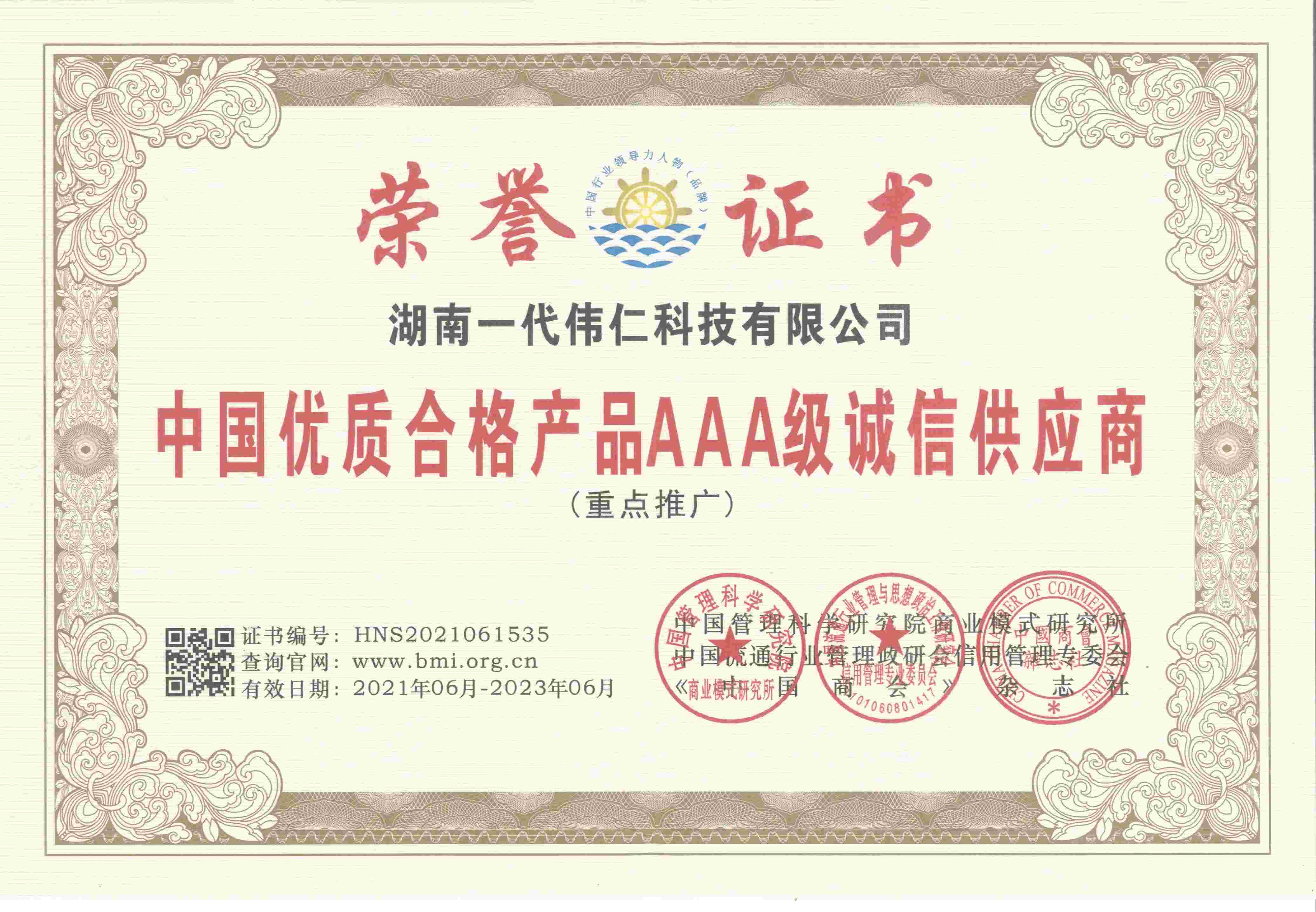 中国优质合格产品AAA级诚信供应商