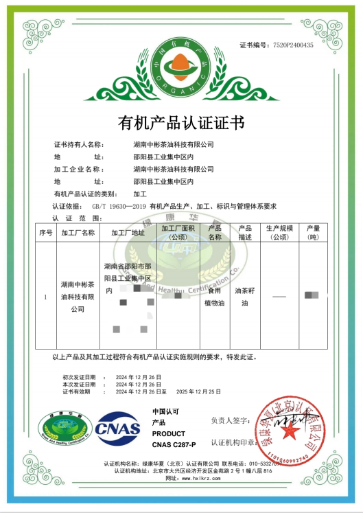 有机产品认证证书