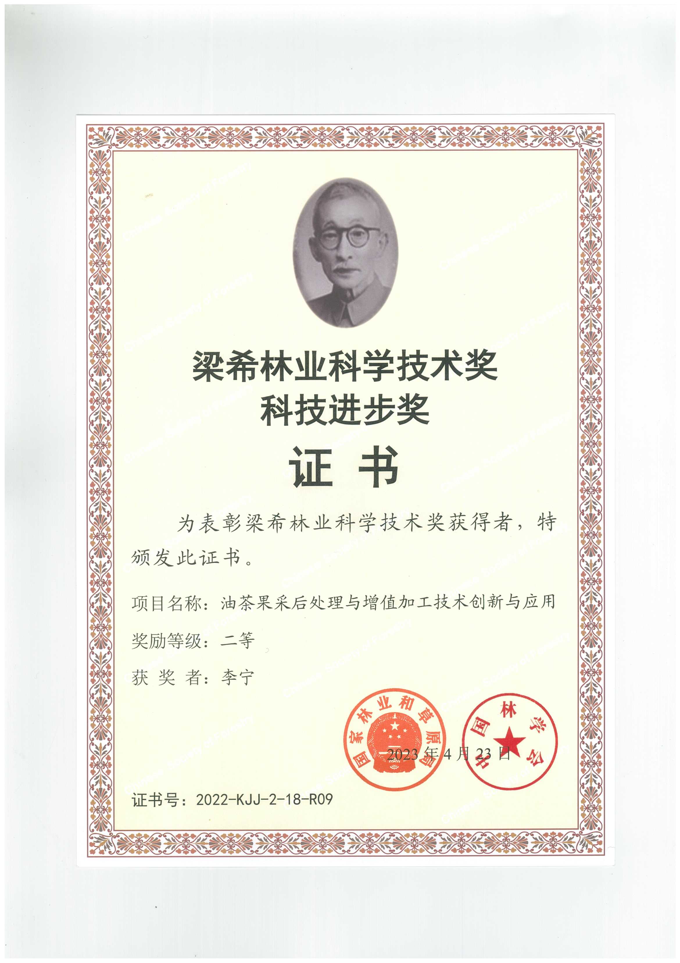 梁希林业科学技术奖科技进步二等奖